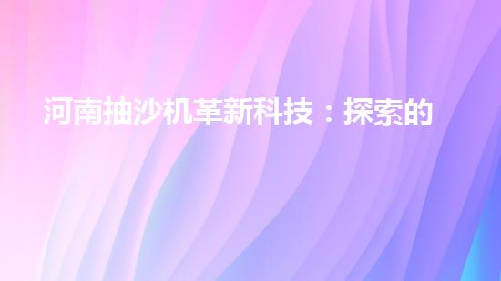 電抽沙機革新設計,提升效率!沙設備關鍵詞解析及市場前景探索